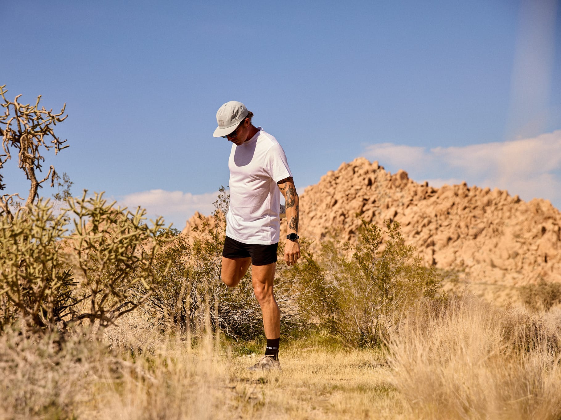 You'll find reflective details across our tops and hats. Small, clean hits that disappear in daylight and catch light when the sun doesn't. Pre-dawn starts. Late finishes. Night miles on roads you share with traffic. It's a design choice and a practical one. Look good at noon. Stay visible at 5 AM.