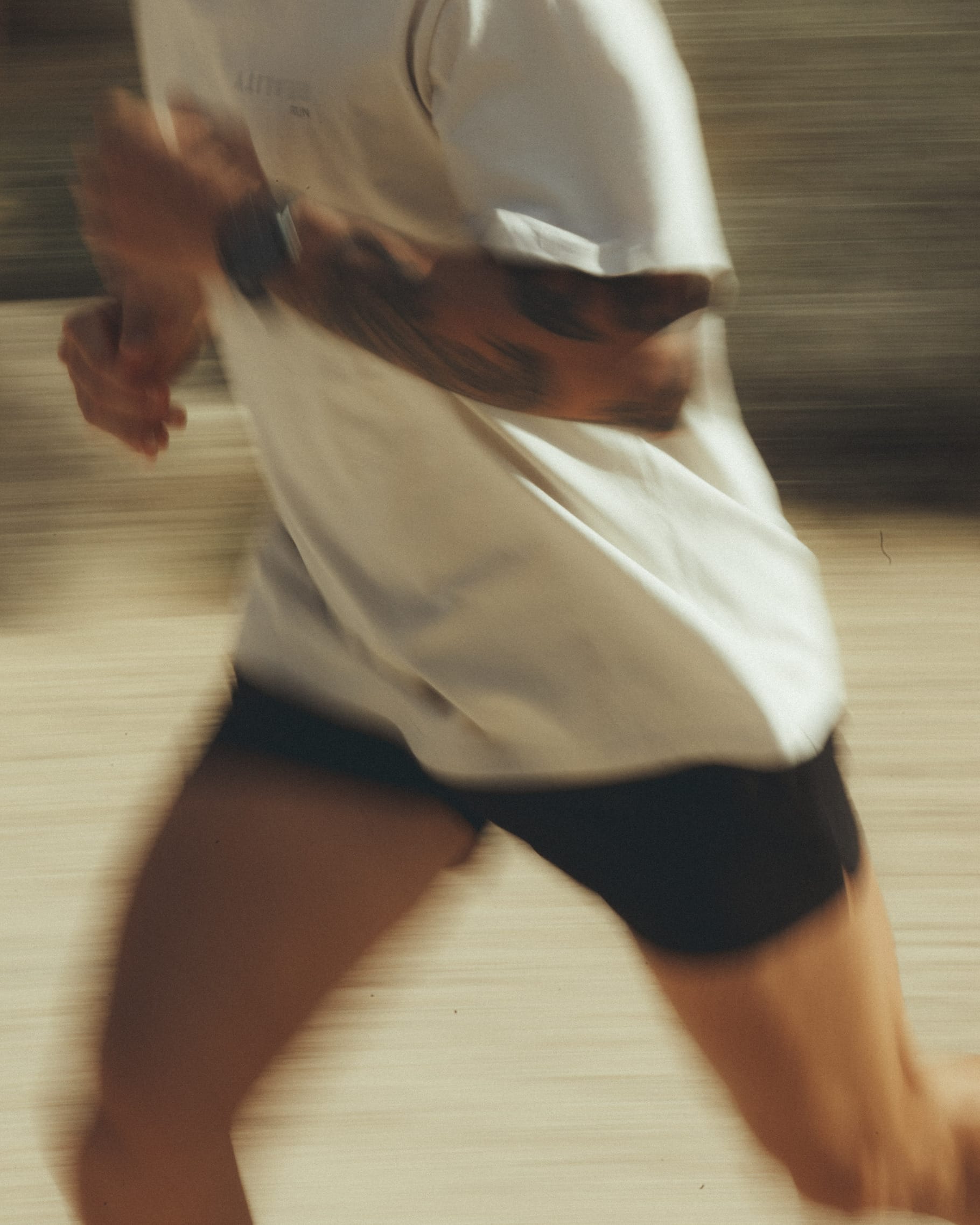 A modern statement built around texture, proportion, and restraint. Subtle puff print logo with reflective RUN detail, relaxed fit, and heavyweight feel.