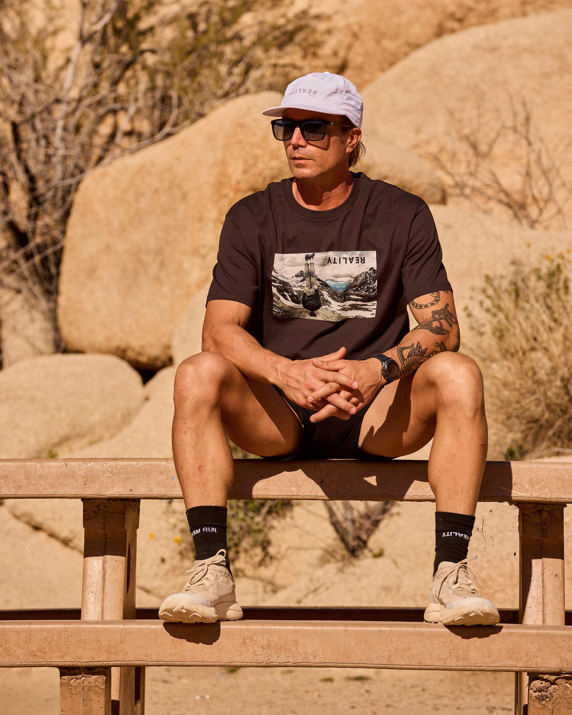 The Perspective Tee features the image that inspired the brand. A moment captured upside down is meant to disrupt how you see effort, place, and progress. It's a reminder that reality is shaped by perspective, and that sometimes the clearest view comes when everything feels inverted. Bold but grounded, this piece carries the visual origin of Reality Run while remaining wearable, restrained, and intentional.